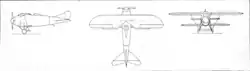The closely cowled radial engine set the diameter of the H.26's short nose and drove a two blade propeller behind a very large diameter domed spinner. The Salmson was initially cooled with a semi-circular Botali radiator to the rear of the engine but this proved ineffective and was replaced with a pair of Chaussons, one on each forward undercarriage leg.[1] The H.26 had a fixed conventional undercarriage with mainwheels on a centrally hinged split axle, enclosed within a lift-contributing wing-like fairing and supported by N-form struts attached to the lower fuselage longerons on each side. Originally, these were reinforced by long vertical struts from the shock absorber attachments to the upper wing central section.[2] These were discarded when the interplane wires were replaced by the faired interplane struts, which extended downwards to the rear undercarriage structure; the tops of the shock absorber struts were relocated to mid-fuselage on the engine mounting.[1][4]