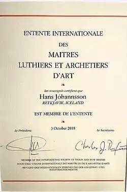 5. ^ "Members Directory EILA". International Association of Violin and Bow Makers. 19 September 2019. Retrieved 21 May 2023.