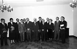 After the Peaceful Revolution, the 1990 East German general election was the country's first free and fair election. Shortly after, Meyer received and accepted an invitation to join the new government headed up by Lothar de Maizière, despite not being a member of any political party, and despite not having stood for election to the Volkskammer national parliament.[2] Between 12 April and 3 October 1990, Meyer served as the German Democratic Republic's last Minister for Education and the Arts.[8][11] His responsibilities included participation as leader of the East German delegation at the Gemeinsame Bildungskommission between May and September 1990. The commission was mandated to adapt an education system that would be implemented across a unified Germany. The commission's output was summarized in the Reunification Treaty (Articles 37 & 38) which came into force in October 1990 and was then implemented both at government level and on the ground.[12] In August 1990, the East German CDU formally merged back into the CDU from which it had been forcibly separated, and Meyer took the opportunity to rejoin the party from which, out of "disappointment over the party's limited political options", he had resigned in 1961.[1]