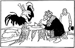 ![]() Hans My Hedgehog meets the king on its chicken mount. Illustration by Otto Ubbelohde. | |