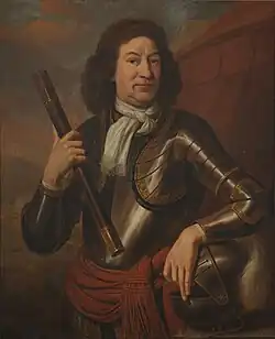 In 1667 he participated in the Dutch Raid on Medway, as commander of the Frisian squadron. He was appointed a major general in 1668 and promoted to lieutenant general four years later.[1] In 1672, at the start of the Franco-Dutch War after Prince William III's appointment as captain general, he was again appointed lieutenant general of infantry and charged with the defence of Friesland. Aylva waged a kind of guerrilla war in the surroundings of Heerenveen; with a small force and his Frisian militias, he had hastily put Friesland in a state of defence by raising earthen entrenchments on the south-east side, forming a line from Kuinre along Heerenveen to Groningen.[2] In July 1672, he led an unsuccessful attack with 1200 soldiers and civilians on Kuinre, where the troops of the Bishop of Munster had gathered much booty. Already 200 enemies had been shot down, and that place would undoubtedly have been conquered, if the Bishop had not obtained a hasty release of 2000 men from Kampen and Zwolle. The Frisians retreated again, losing 30 men in total.[3] On 27 August the Bishop had to abandon the Siege of Groningen. Whereas the Dutch had managed to supply the city through waterways at its northern edge, Von Galen's troops were starving and had largely deserted.[4] Largely due to an effective guerrilla campaign by troops from Friesland under Hans Willem van Aylva against their supply lines.[5]