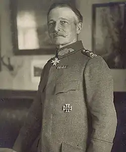 In September 1915, Gronau was appointed to command of XXXXI Reserve Corps, swapping places with Generalleutnant Arnold von Winckler. The corps was upgraded to form Armee-Gruppe Gronau on 20 September 1915. Gronau remained in concurrent command of the corps and the Armee-Gruppe. It served as part of the Army of the Bug throughout its existence. On 18 September 1916 the command was upgraded to form the Armee-Abteilung Gronau.[3] It remained on the Eastern Front until dissolved on 27 March 1918.[4]