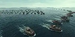 Hansan: Rising Dragon (Korean: 한산: 용의 출현) is a 2022 South Korean historical war action film directed by Kim Han-min.[4] The sequel to 2014's The Admiral: Roaring Currents, the film is the second installment in the Yi Sun-sin trilogy.[5][6] It stars an ensemble cast led by Park Hae-il as the Korean naval commander Yi Sun-sin. The film depicts the historical Battle of Hansan which took place five years before the Battle of Myeongnyang depicted in The Admiral.[7] It was released on July 27, 2022 in IMAX, 4DX and ScreenX formats.[8][9]