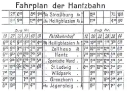 The Hantzbahn was a 25.7 km (16 mi) long narrow-gauge railway with a gauge of 600 mm (1 ft 11+5⁄8 in) from Saint-Blaise-la-Roche in Alsace over the Hantz Pass and beyond.[3]