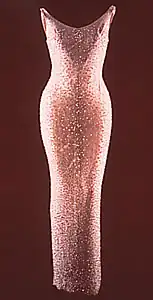 Monroe's iconic dress was designed by costume designer Bob Mackie, who was hired to sketch the design for the leading fashion designer of the time, Jean Louis, who paid $1,440.33 (equivalent to $11,111 in 2023[12]) for its construction. The dress sold in 1999 at an auction in New York City for over $1.26 million (equivalent to $2.17 million in 2023[12]).[13][7] Canadian billionaire Jim Pattison subsequently purchased the dress on November 17, 2016, at a Los Angeles auction for $4.8 million,[14] making it one of the most valuable dresses.