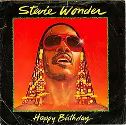 "Happy Birthday" is a song written, produced and performed by Stevie Wonder for the Motown label. Wonder, a social activist, was one of the main figures in the campaign to have the birthday of Martin Luther King Jr. become a national holiday, and created this single to promulgate the cause.[2] The song has since become a standard for use during birthdays in general, particularly among African Americans.