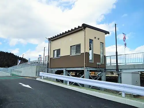 Haraigawa station opened between Toyomane Station and Tsugaruishi Station on 23 March 2019, simultaneously completed to reconstruct a section of Yamada Line between Miyako Station and Kamaishi Station and its transfer to Sanriku Railway's Rias Line.[1][2]
