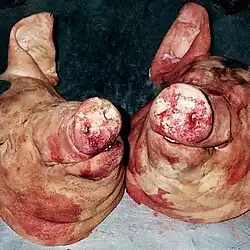 The album art, which depicts two bloody decapitated pigs,[2] drew criticism from animal rights group PETA, who called it "terrifying" and "cruel", and told the Alchemist to change it and "focus on the music, not the shock value of dead animals", after he posted it on Twitter.[3]