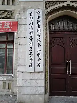 The Harbin Korean No. 2 Middle School (also Harbin Korean 2nd Nationality Middle School) is a school for ethnic Korean residents of Harbin, Heilongjiang in northeast China.[1][2]