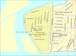 ![]() Harbor Isle, as seen towards the bottom right from an airplane. Island Park and the hamlet of Barnum Island are also visible. | |