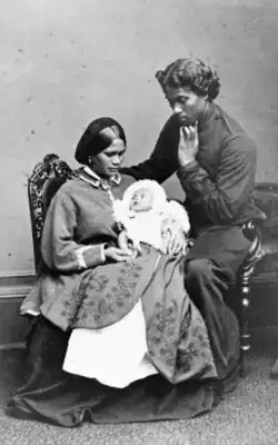 Hare and Hariata stayed with Elizabeth Fairburn Colenso in Tottenham, London. On 26 October 1863, Hariata gave birth to Albert Victor, who was named after the Queen's deceased husband.[2] On 4 December 1863, Elizabeth accompanied Hariata and Hare as interpreter on a visit to Queen Victoria at Windsor Castle to present Albert Victor.[3] Queen Victoria was made the godmother of Albert Victor Pomare.[2]