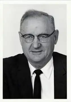 After World War II, Spedding and Wilhelm founded the Institute of Atomic Research and the Ames Laboratory of the Atomic Energy Commission.[10] Wilhelm became its associate director in 1945, serving in that capacity until 1966.[11] He remained the principal scientist and professor of chemistry and metallurgy until he retired in 1970 at the mandatory retirement age of 70.[1] The Ames Laboratory was initially established on the grounds of Iowa State College. Permanent buildings were constructed that were opened in 1948 and 1950, and subsequently named Wilhelm Hall and Spedding Hall respectively in 1986.[10][12] His work at the Ames Laboratory ranged over a wide range of subjects, from the design of high-speed computers to environmental waste management and materials science. He individually or jointly held over 40 patents relating to chemistry and metallurgy, and 60 relating to atomic energy. He was part of the United States delegation to the 1955 International Conference on the Peaceful Uses of Atomic Energy in Geneva.[1]