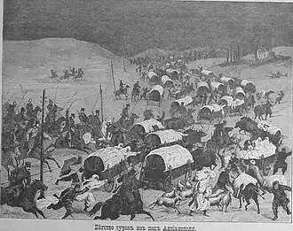 ![]() Russian cavalry attacking a column of Turkish refugees near Adrianople | |||||||