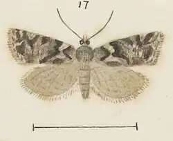 - ^ a b c d Edward Meyrick (May 1883). "Descriptions of New Zealand Microlepidoptera. I and II. Crambidae and Tortricina". Transactions and Proceedings of the New Zealand Institute. 15: 44–45. ISSN 1176-6158. Wikidata Q111013914 – via Biodiversity Heritage Library.