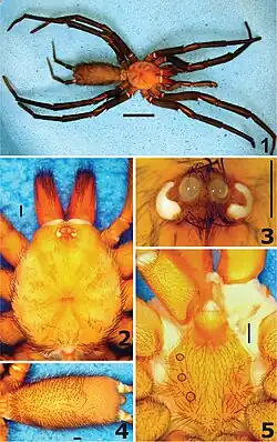 - ^ Wermelinger-Moreira, G., Castanheira, P. S., & Baptista, R. L. C. (2024). "A new species of Harmonicon F. O. Pickard-Cambridge, 1896, from central-west Brazil and redescription of H. rufescens F. O. Pickard-Cambridge, 1896 (Araneae, Mygalomorphae, Dipluridae)". Evolutionary Systematics. 8 (2): 261–271. doi:10.3897/evolsyst.8.141847.