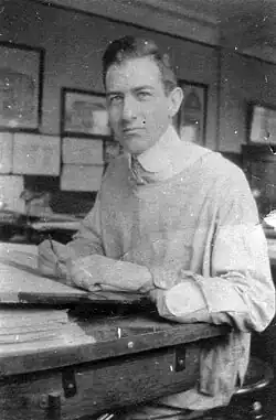 After returning to Rochester, Crawford’s first commission was for Dr. Christopher Graham, a founding member of the Mayo Clinic.[5] This commission and others helped to establish Crawford's reputation as a prominent residential architect, eventually designing many homes for Mayo Clinic physicians, especially in the Pill Hill Residential Historic District and surrounding neighborhood. During World War I, Crawford joined the army as a second lieutenant.[1] One of his first commissions after the War was for Parish Hall at Cavalry Episcopal Church.[4] Crawford is attributed to over 180 structures, the slight majority of which (ninety eight) were residential.[5] He designed seventy houses in southwest Rochester and twenty three outside of Rochester.[1] In his residential projects, he was known for often being on site with his clients and making final design decisions and changes at the job site.[5] His portfolio also included numerous non-residential structures including commercial and agricultural buildings, government buildings, schools, creameries, medical buildings, churches, and apartment buildings.[1][5] He was known for making elaborately detailed drafts of properties without the assistance of a draftsman.[5] A frequent collaborator in the construction of Crawford's designs was Garfield Schwarz, whose company also constructed every Mayo Clinic building from 1914-1948, including the iconic Plummer Building.[6]