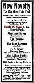 - ^ a b News item with lead "Harold Shaw...", Variety], 15 March 1918, p. 40, col. 4. I.A. Retrieved 16 August 2021.