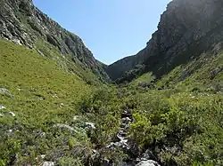 The Harold Porter National Botanical Garden covers almost 200 ha between mountain and sea, in the heart of the Cape Fynbos region within the Kogelberg Biosphere Reserve to the east of Cape Town, South Africa, specifically near Betty's Bay along Clarence Drive (R44). With about 1,600 plant species, the area contains a floral diversity per unit area that is greater than anywhere else in the world. The Garden consists of 10 hectares of cultivated gardens and 190.5 hectares of pristine natural fynbos. In addition, 60 species of birds can be found there, as well as porcupines, genets, skunks, hyraxes, baboons, and snakes. Foot trails reach cliffs, ravines, heaths, forests, streams, and mountain pools.