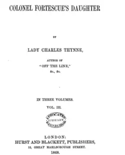6. ^ a b c d e f g "Author: Lady Charles Thynne". At the Circulating Library: A Database of Victorian Fiction, 1837–1901. Retrieved 2023-07-03.