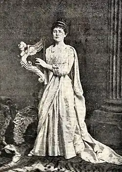 She performed dramatic and musical recitals at the Queen's Hall, Prince's Hall, Royal Albert Hall, St James's Hall, and in the provinces.[10][11][3][12] She composed her own songs, such as the ballads 'A Game of Tennis' (1886) and 'Richmond Park'.[13] 'A Song of Remembrance' (1892) used Christina Rossetti's poem 'Remember'.[14]