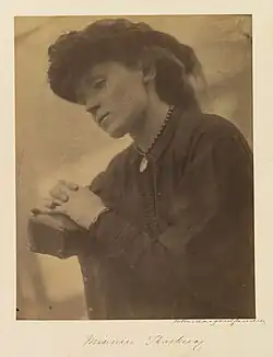 Minny met Leslie Stephen at a dinner party held by his mother, Lady Stephen, with whom they were friends.[1][3] Elizabeth Gaskell, also present, told Stephen later that she had foreseen their marriage from this early stage.[1] Although the courtship was slow, the couple became engaged in December 1866, and married on 19 June the following year. Minny's sister, Anne, continued to live with the couple at the house she and Minny had bought together.[1]
