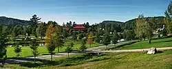 Harrington is a land of lakes and rivers, stocked with abundant fish. The Rouge River is the main river flowing through it, and the largest lakes include Lake (Lac) MacDonald, Green Lake, and Lake Harrington, each attracting a large number summer cottage vacationers. Its territory has a characteristic appearance of the Laurentian region with dense forests, rising to an elevation of 457 metres (1,499 ft) in the north-east, which is 30 metres (98 ft) more than Mont Chauve which dominates Green Lake.[10][11]