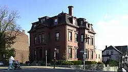 The Harrison Loring House is a historic house at 789 East Broadway in the South Boston neighborhood of Boston, Massachusetts. It is a 2+1⁄2-story brick mansion, with a mansard roof in the Second Empire style. It has brownstone trim around the windows, a modillioned cornice, and a projecting center section with its entrance sheltered by a shallow portico. It was built in 1865 for Harrison Loring, owner of the City Point Iron Works, a major South Boston shipyard, at which steamships were built in the late 19th century. Loring lived in this house until 1894.[2]
