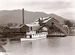 It was at this time that Emma Menten moved her store from Lot 10A to a site immediately east of the Martin mill in order to compete with a new store by the railway opened by Laurie and David Galbraith. Meanwhile, Captain Menten built a small sternwheeler called the Minto to carry passengers between Chilliwack and Harrison Mills. This increased the traffic coming across the Fraser River from Chilliwack and spurred business in the town.