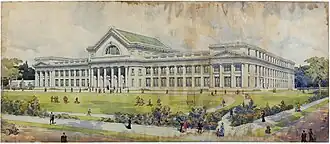 The school was opened in 1912 and was named after Chicago mayor Carter H. Harrison, who served as mayor from 1879 to 1887. The school's building was completed in 1914.[2][3] Starting from 1962 until the opening of Benito Juarez, Harrison had a branch school, Froebel, which served only ninth grade[4] and drew students from the boundaries of Cooper Upper Grade Center and Pickard. Students from Froebel moved onto the main campus for grades 10 to 12.[1] They had briefly experimented with a sophomore year before the school was closed.