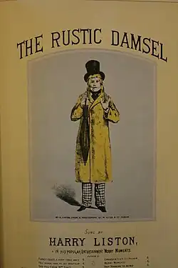 Liston made his performing début at the Scotia Music Hall, Glasgow in 1863, continuing on the music hall circuit. Two years later, he moved to London and adopted a new style of performing as a Lion comique. He became associated with many popular comedians of the day, including Arthur Lloyd, George Leybourne and Alfred Vance. His repertoire included such songs as "The Ginger-haired Swell", "Naughty Mary Ann" and "I'll Tell Your Wife". Perhaps his best known song became his signature tune, "When Johnny Comes Marching Home".[1][2] By 1888 and with the Lion comique becoming out of date, Liston developed a new entertainment, "Merry Moments", with which he toured concert halls throughout the country.[3][4]