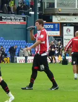 Maguire went into the following season as first choice in the centre of defence and his good form continued as he scored twice on 17 October 2012 in a 4–1 away victory over Notts County in the Football League Trophy.[18] By the end of February 2013, Maguire had made his 100th start for United in a 0–0 home draw against Leyton Orient at the age of just 19.[19] His performances during the 2012–13 and 2013–14 seasons earned him a place in the PFA Team of the Year for League One again.[20][21]