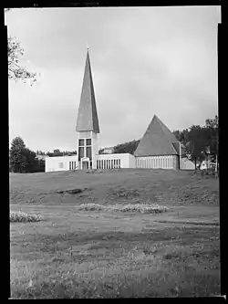 Harstad Church (Norwegian: Harstad kirke) is a parish church of the Church of Norway in Harstad Municipality in Troms county, Norway. It is located in the town of Harstad. It is the church for the Harstad parish which is part of the Trondenes prosti (deanery) in the Diocese of Nord-Hålogaland. The white, concrete church was built in a long church style in 1958 using plans drawn up by the architect Jan Inge Hovig. The church seats about 600 people.[1][2]