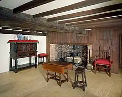 A dendrochronology survey in 2007 proved that the earliest portion of the "Hart" house dates to 1680 when it was built by a newly married Samuel Hart, a tanner. For many years it was thought to date to 1640 as the home of his father, Thomas Hart.[1] The house as originally built was a two-and-one half story single room plan house, with a chimney bay on the east end. An addition was later added onto the opposite side of the chimney c. 1725. Restorations to the house to make it more original took place in 1902 when it was used as a guest house. Two full interior rooms from the original structure were purchased in the 1930s by New York's Metropolitan Museum of Art (purchased a downstairs room) and Delaware's Winterthur Museum (purchased an upstairs room) as exhibits.[1] The Hart House now serves as a tavern and restaurant in Ipswich.[2]