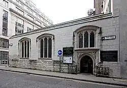 St Olave's on Hart Street was the parish church of Samuel Pepys. The church is primarily medieval in origin and was one of only a handful of City churches that escaped the Great Fire of London in 1666.[2]