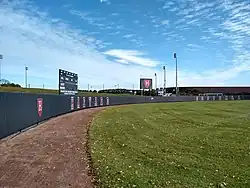 The Harvard Crimson softball outfield.