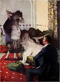 In 1906, after two years with Pyle, Dunn established his own studio in Wilmington and immediately began a successful career as an illustrator. He was a prodigious painter, able to produce (on one occasion) fifty-five completed paintings in eleven weeks for various clients. A contemporary described his style in these terms, “He literally attacked a canvas and sometimes I thought he would impale the painting with his brush.”[7] In addition to his illustrations for books, Dunn's work by then was appearing regularly in such magazines as Collier's Weekly, Harper's Magazine, The Saturday Evening Post, and Scribner's.[8]