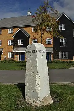 The White Hart in the High Street is an early 17th-century timber-framed building with early 18th- and mid-19th century brick-built extensions.[14] It now trades as the Hart of Harwell pub and restaurant.[15] Harwell once had five pubs[16] and a brewery. The former brewery is a 17th-century building in the High Street with an 18th-century malt house and 19th-century extension. It is now a private house.[17] The Crown in the High Street was converted into a nursing home, which was run by Southern Cross Healthcare and ceased trading in 2012.[18] The Chequers, The Crispin and The Kicking Donkey have all been converted to private houses.[16] On 4 April 1899, Berkshire Constabulary PC John Charlton was killed in an affray outside the Chequers. His two killers were felled and arrested by another officer, PC Thomas Hewett and later sentenced to 20 years hard labour for manslaughter.[19][20] Until the Second World War Harwell may have been best known for its cherry orchards.[21]