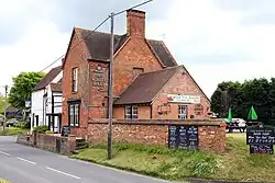 Harwell contains two 13th-century houses, each of which is a Grade II* listed building. Lime Tree Cottage in the High Street was built about 1250 and remodelled about 1300. A cross-wing was added about 1360 and the house was given a new front about 1700.[9] Gable Cottage and Tibbleton Cottage in Wellshead Lane were originally one timber-framed house, built in about 1295 and extended with a new front range in the 17th century.[10] Bayllols Manor house at Middle Farm is a timber-framed 14th-century hall house,[11] and its service wing may be the remains of a 13th-century building.[5] In 1589, an upper floor was inserted in the 14th-century hall and some pargeting was applied.[5] The farm has two 14th-century barns, each of which is Grade II* listed. One is the Cherry Barn, which was built about 1350 and has 15th- and 17th-century outbuildings.[12] The other was built around 1365 and has a cruck frame.[5][13]