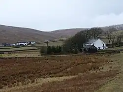 There is a long history of lead mining in Harwood,[2] which reached a peak in the late nineteenth century when a church (1849) and school (1853) were built.[2] The buildings, long abandoned, can be still be seen today.[3] To the west of Harwood, Cow Green Reservoir was constructed on former mining land in the 1960s, while Harwood Common rises above the valley to the north.
