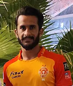 Hasan Ali (Punjabi and Urdu: حسن علی;[3] born 2 July 1994) is a Pakistani cricketer who plays for the Pakistan national team in all formats.[4] He made his first-class debut for Sialkot in October 2013.[5] He made his international debut for Pakistan in August 2016 in a One Day International (ODI) match against Ireland.[6] The following summer, he was named in Pakistan's squad for the 2017 ICC Champions Trophy.[7] Pakistan went on to win the tournament with Ali named player of the tournament after taking thirteen wickets, and took the final wicket of Jasprit Bumrah.[8] He became the quickest bowler for Pakistan to take 50 wickets in ODIs.[9] In August 2018, he was one of thirty-three players to be awarded a central contract for the 2018–19 season by the Pakistan Cricket Board (PCB).[10][11]