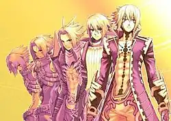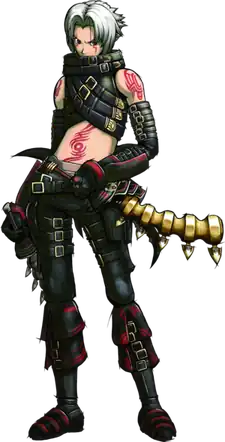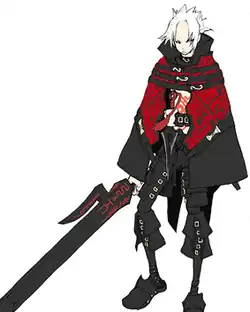 Haseo and Ovan's visual appearances were designed by Seiichiro Hosokawa. They were Hosokawa's first creations on becoming a professional during his rookie days at CyberConnect2.[15] Matsuyama stated that he was mainly influenced by Manji, the main character of the manga Blade of the Immortal by Hiroaki Samura, in designing Haseo.[16] In some scenes at the game's beginning, Haseo was designed with a scary look.[17] Originally CyberConnect2 intended his first design to include more clothing, including a cape covering his body, but they ended up with a design that revealed more of his skin.[18] The cape was meant to conceal Haseo's weaponry, but the team feared issues with how the graphics would handle this. There was a lot of trial and error working on this.[16]