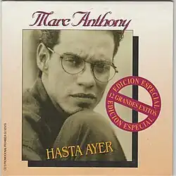 "Hasta Ayer" (English: Until Yesterday) is a written by Manny Delgado and performed by Venezuelan band Los Terricolas on their 1979 studio album of the same title. It was later covered by Puerto Rican-American singer-songwriter Marc Anthony on his second studio album Todo a Su Tiempo (1995).[1] On the review of the album, Achy Obejas of The Chicago Tribune called an " oldie but goodie totally transformed by soulful crooning.".[2] A music video for Marc Anthony's version was filmed in Mexico City and directed by Benny Corral.[3] At the 1997 Lo Nuestro Awards, it was nominated Tropical Song of the Year.[4] It was recognized as the best-performing songs of the year at the 1997 ASCAP Latin Awards in tropical field.[5]
