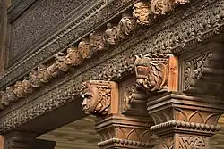 The Durbar Hall was constructed for the 1886 Colonial & Indian Exhibition in London. It was donated in 1919 as part of the Brassey Collection.[4] The hall was the centrepiece of the Indian Court, a series of buildings designed and laid out like a traditional Indian palace. It was designed by Caspar Purdon Clarke and was built on-site by Mohammed Baksh and Mohammed Juma. Baksh and Juma were skilled woodcarvers brought over from the Punjab specially to do the wood carving required for the exhibition. During the exhibition, the hall was the Prince of Wales official reception pavilion. At the conclusion of the exhibition Thomas Brassey, 1st Earl Brassey bought parts of the Indian Court and had them remodelled and installed as an extension to his Park Lane house. It was removed from London by Thomas Brassey, 2nd Earl Brassey and gifted to Hastings in 1919. It was kept in storage until the 1930s, when it was re-constructed at the museum as it looked in the Brassey family's London home. Today the hall is lower floor of the hall is regularly used for many different types of events, including talks, theatre performances, preschool groups and weddings & civil partnerships. The upper hall is one of the museum's world cultures galleries.[5]