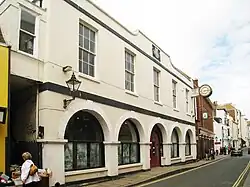 The first town hall in the town was built at the expense of local members of parliament, John Pulteney and Peter Gott, in the High Street in 1700.[2][3][4] It was replaced by a stuccoed structure which was built on the same site and completed in 1823.[5] It was arcaded on the ground floor to allow markets to be held, with an assembly room on the first floor.[5][a]