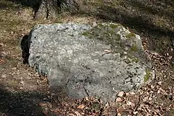 Next to Hatanpää Manor is the Hatanpää Park. The Hatanpää headland, next to the actual manor park, has also had an arboretum, a tree species park and a rose garden since the 1970s.[1] In the park of the manor there is a large natural stone with the Greek text “Egno Kyrios tous Ontas autou” (English: “The Lord Knows His Own”). The engraving is thought to date from the 18th century in the time of Boije and was possibly made during the visit of King Gustav III in 1775. Boije and the king were both Freemasons. The stone is known as the “Freemason's Grave” (Finnish: Vapaamuurarin hauta), although no one has been buried on the site.[2][8]