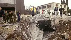 On 19 January 1991 during the First Gulf War a shelter just in front of Beit Dani was directly hit by an Iraqi Scud rocket. Although the shelter was used by the neighbours regularly, just on this day after the alarm the lock malfunctioned. So, because of this empty shelter no one was hurt or killed.[4] To commemorate the escape an iron memorial (named "Angel of peace") with 3 wings was erected in 1992 in front of Beit Dani, inscribed at the bottom with biblical words in Hebrew ("covering with their wings" (Exodus 25:20)).