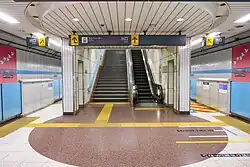 The station has an underground island platform serving two tracks. The platforms are equipped with waist-height platform edge doors.