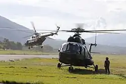 ![]() Peruvian Army helicopters land in the VRAEM Area | |