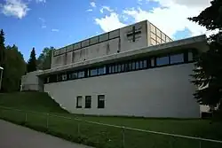 Haugerud Church is a church center, consecrated in 1966. The church belongs to the Church of Norway. The altarpiece is a tapestry by Else Marie Jakobsen. The church bells are placed on the roof. The church has 600 seats in total.[3]