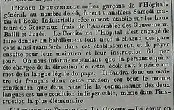 Haut de la Garenne began in 1867 as an industrial school for "young people of the lower classes of society and neglected children".[1] The construction of the school was funded at a cost of £2,410[2] by the Assembly of Governor, Bailiff and Jurats in order to house and educate boys formerly looked after at the General Hospital in Saint Helier.[3] On 22 June 1867, 45 boys were transferred by coach to the new institution, overseen by Jurats Neel and Aubin, Charles Simon, director of the hospital, and Mr. Higginbottom, master of the new school.[4]